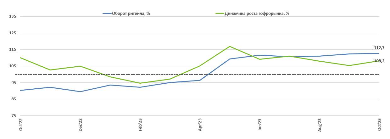 Отличительной особенностью второй половины уходящего 2023 г. можно назвать изменяющуюся структуру потребительского поведения от накопительной к расходной, но пока только в части недорогих приобретений. Адаптация к текущим макроэкономическим условиям прогрессирует, поэтому вторая половина года демонстрирует ускорение темпов роста рынка в целом.