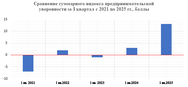 В связи с этим, индекс предпринимательской уверенности в отрасли вырос по сравнению с I кварталом предыдущего года на 10 баллов, а по сравнению с I кварталом предкризисного 2021 г. – на 20 баллов.