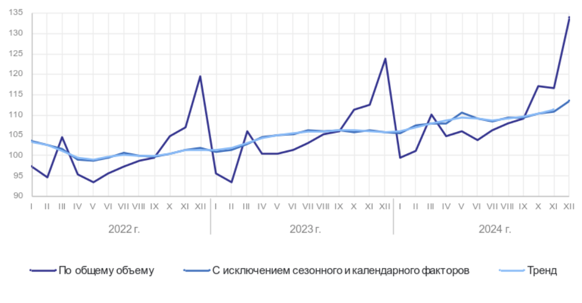 - декабрь 2024 года к ноябрю 2024 года – 104,2%;