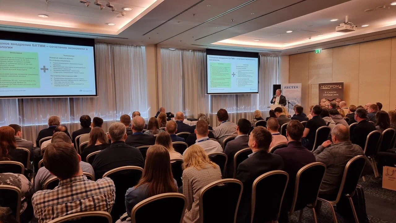 В своем докладе Олег Рыбников рассказал о производстве беленой химико-термомеханической древесной массы (БХТММ), которая используется для изготовления различных видов бумаги и картона, позволяя снижать затраты и улучшать качественные характеристики конечного продукта, такие как жесткость, толщина, непрозрачность и др. Кроме этого, привел примеры успешного использования БХТММ для производства строительных материалов (фиброцемент, асфальто-бетонные смеси, ламинат), звуко- и теплоизоляционных материалов, МДФ, ДСП и других.