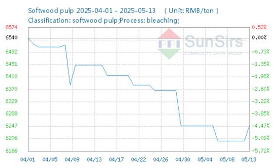 В начале мая в Китае было зафиксировано падение стоимости на тарные картоны, макулатуру, однако прошла неделя и согласно последнему мониторингу SunSirs, с 8 по 13 мая зафиксирован рост цен на хвойную и лиственную целлюлозу.