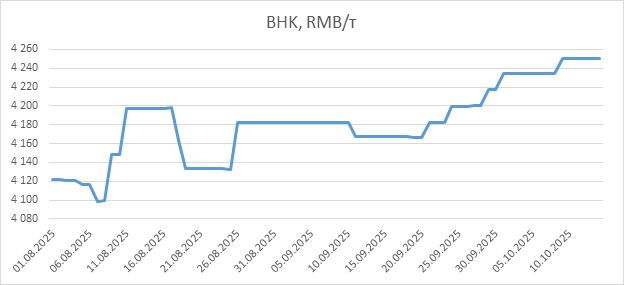 Согласно данным мониторинга системы анализа рынка сырьевых товаров SunSirs, цены на хвойную целлюлозу в начале октября продолжили снижение, в то время как на лиственную целлюлозу немного выросли. На 13 октября средняя рыночная цена на хвойную целлюлозу в провинции Шаньдун составила 5550 юаней за тонну, а средняя рыночная цена на лиственную целлюлозу в провинции Шаньдун составила 4250 юаней за тонну.