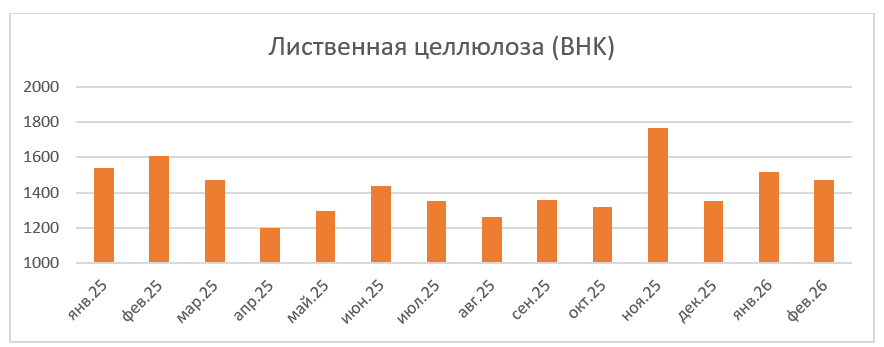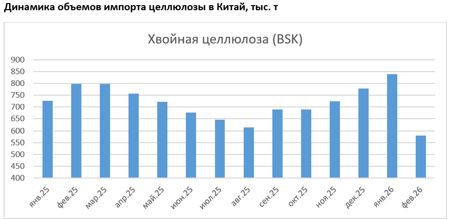 Однако покупатели предложили другой подход. Сезонно высокие месяцы спроса на целлюлозу и бумагу на китайском рынке уже позади, о чем свидетельствует традиционное пополнение запасов в течение нескольких недель после новогодних праздников. Импорт целлюлозы в Китай уже вырос примерно на 1,8 миллиона тонн в 2025 году, а импорт в январе и феврале оставался высоким, что свидетельствует о том, что запасы целлюлозы в основном переходили от производителей к покупателям в течение четвертого и первого кварталов.