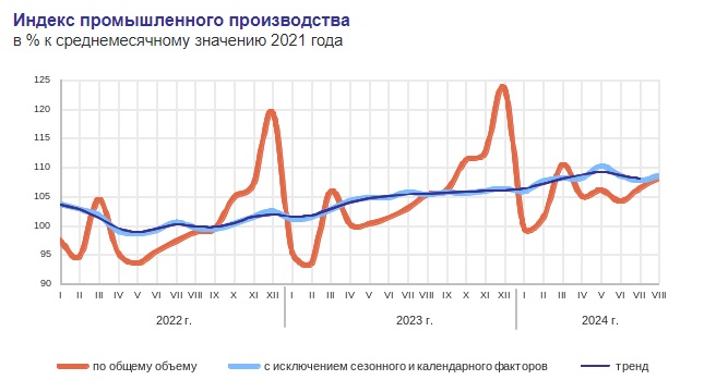 В сравнении с аналогичным периодом 2023 года индекс промышленного производства достиг 104,5%, а в августе составил 102,7% по сравнению с августом прошлого года.
