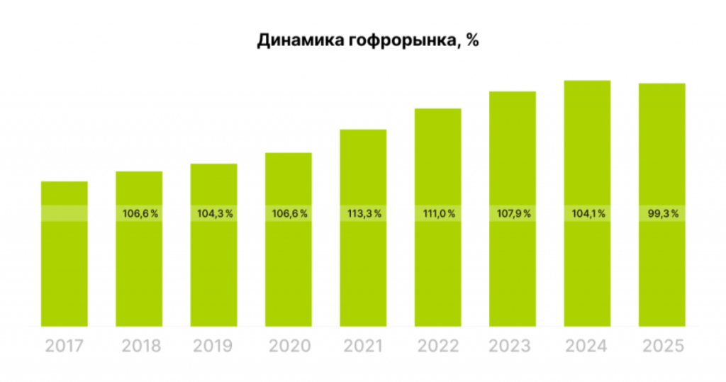Рынок гофроупаковки – основного потребителя тарного картона – завершил 2025 год снижением на 0,7%. Это первое годовое снижение за последние десять лет.